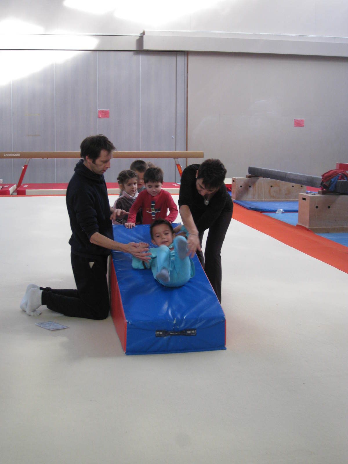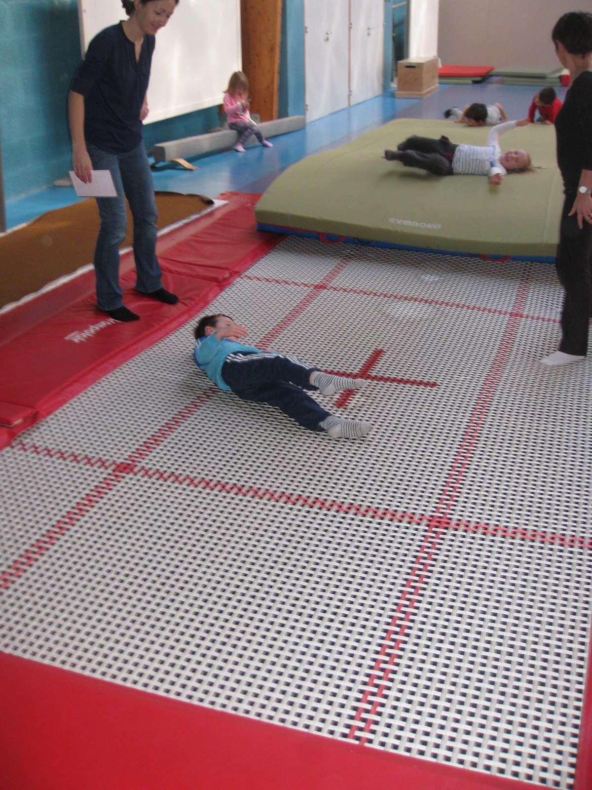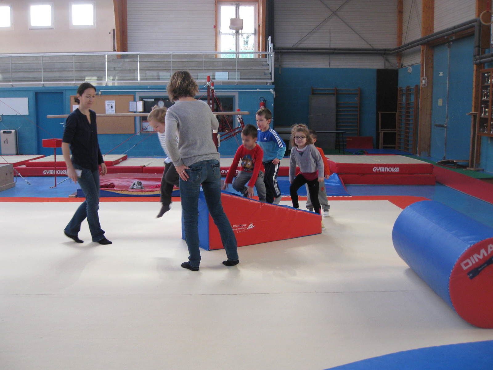 Nous commençons la séance par un échauffement, puis un parcours dans la salle. Ensuite chaque groupe découvre un agrès avec des petits exercices. Et nous terminons par de la relaxation.